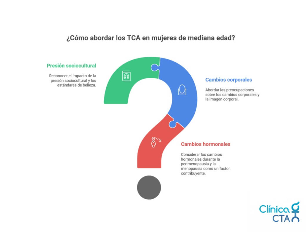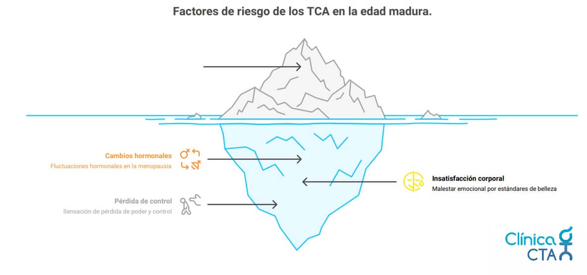 Todos estos cambios ocurren en un contexto social que pueden empeorar la insatisfacción corporal y el malestar emocional de las mujeres de mediana edad por sus estándares de belleza poco realistas, constituyendo así factores de riesgo de los TCA.