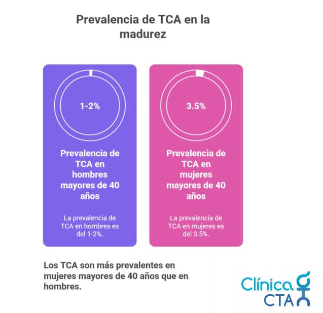Mangweth-Matzek & Hoek (2017) afirman que la prevalencia de los TCA está entre el 1% y el 2% en hombres y alrededor del 3.5% en mujeres mayores de 40 años.